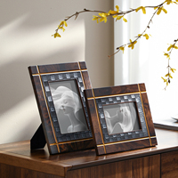 إطار صور كلاسيكي فاخر من Flolenco مصنوع من الخشب المحبب إطار أسود مصنوع من خشب MDF وتصميم إبداعي من الجلد لديكور المكاتب المنزلية