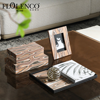 Flolenco กล่องตกแต่งบ้านสไตล์วินเทจหรูหราทรงสี่เหลี่ยมผืนผ้าไม้เนื้ออ่อนไม้วีเนียร์กล่องเก็บด้ายสีเงินสีดำ
